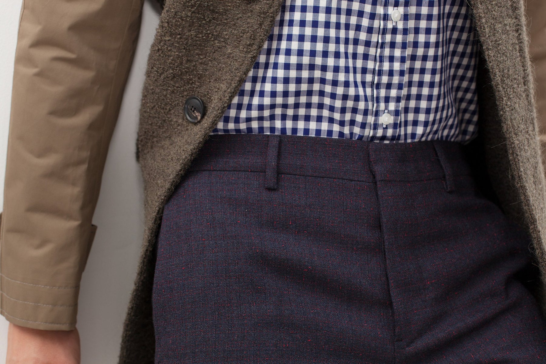 Classic boiled wool with weather proof nylon canvas. Strapped cuffs and raglan sleeves contrast a woolen front welt and patch pockets. Mauro Grifoni. Color Olive. Made in Italy.